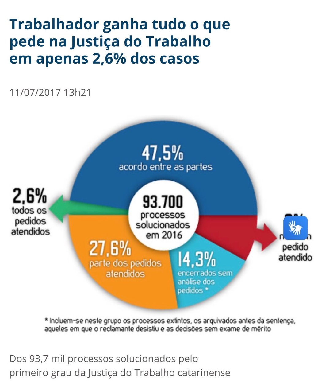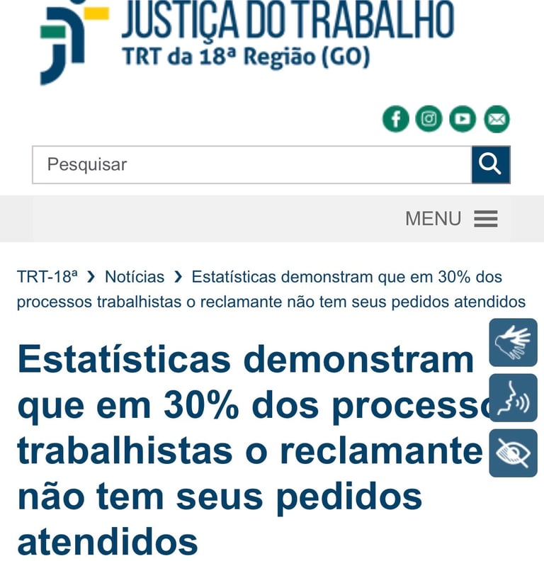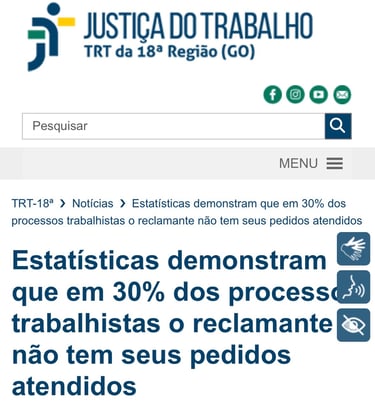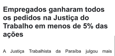 A taxa de êxito total nas demandas trabalhistas não passa de 2,6%. É raríssimo você ver uma sentença de TOTAL PROCEDÊNCIA, por exemplo.